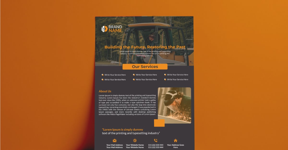 Industrial Construction Flyer Presenting a clean, professional, and modern flyer design—perfectly suited for Industrial Construction-related promotions. Fully customizable and print-ready, this template allows you to easily insert your own images and text to create a polished final design. Ideal for a wide range of uses within the Industrial Construction Sector. Key Features: Fully editable Unique…