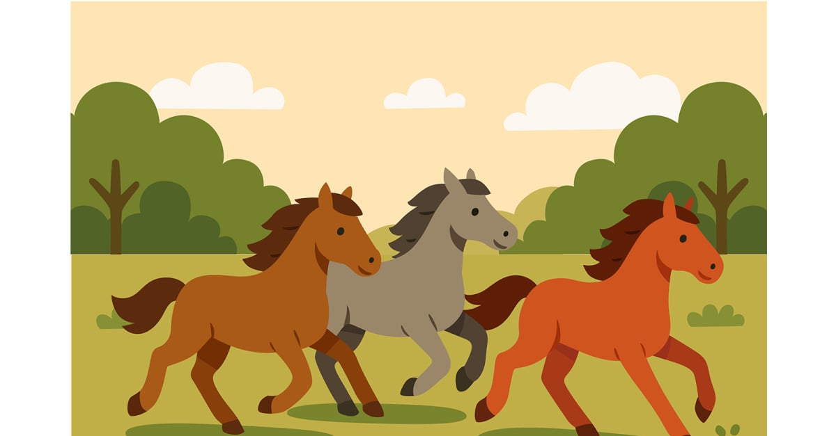 File Included : AI (CS6)EPS10Image 4000 x 3000 (px) **Discover an eye-catching background illustration featuring a group of horses in motion across a field—ideal for enhancing your designs** **A group of horses is seen running energetically on a grassy field. This illustration captures the beauty and vitality of these mammals in motion**