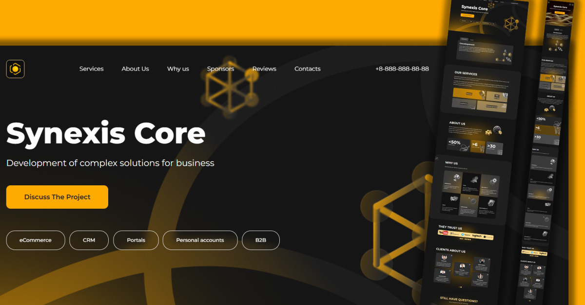 Synexis Core The site is designed for IT companies involved in development. The combination of beautiful design and perfectly selected color scheme gives a feeling of solidity. Immediately after loading the page, you can see the site header with the logo, menu and number (for quick reference). A welcome section that displays the name, brief…