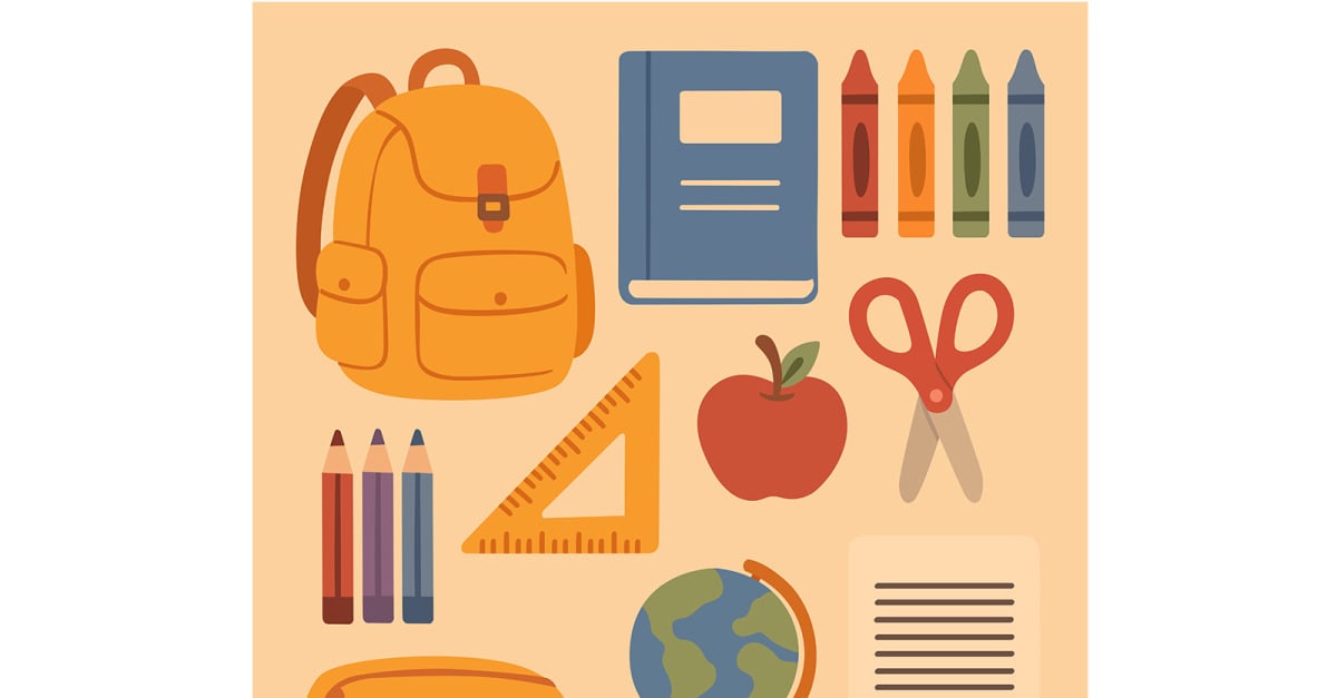 File Included : AI (CS6)EPS10Image 5000 x 5000 (px) **Explore our Elements Collection of school supplies with vibrant icons, perfect for your back to school needs. Shop essentials today!** **The illustration features a variety of school supplies arranged alongside a colorful backpack. Items like notebooks, pencils, and markers are visible, highlighting the theme of education**