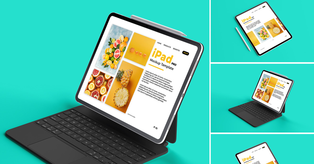 iPad Pro Mockup Set – High-Quality PSD Template for Branding and Product Presentation Showcase your designs with this high-quality iPad Pro Mockup Set. Perfect for presenting apps, UI designs, or branding projects in a realistic and professional way. Designs and fonts shown in previews are for demonstration purposes only and are not included in the…