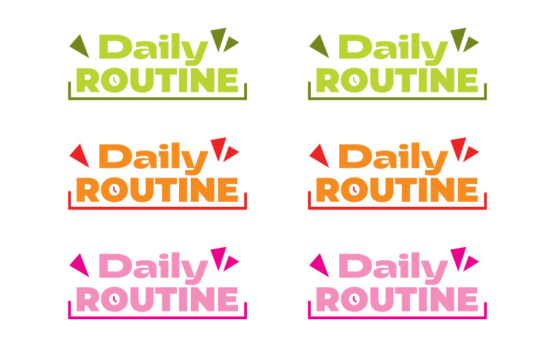 Daily Routine Text Logo Vector Set in Green, Orange, and Pink Colors