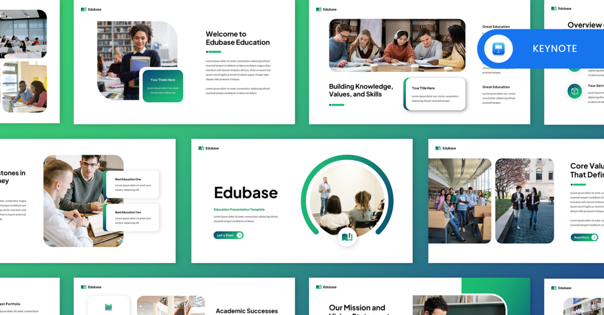 Introducing **Edubase – Education Keynote Template** This Presentation Template can be used for any variety of purposes, such as: University, Education, College, Student, Teacher, Seminar, Corporate, Digital Marketing, Technology, Creative, Company Profile, Multimedia, Corporate and Business, Photography, Project, Multipurpose ,Startup, Pitch Deck,Industry and also can be used for Personal Portfolio. **FEATURES** – Unique Slides: 24+…
